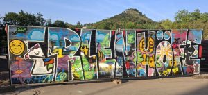 Saurierpfad Jena- Graffiti Trafohaus & Medienkästen